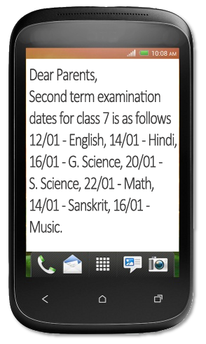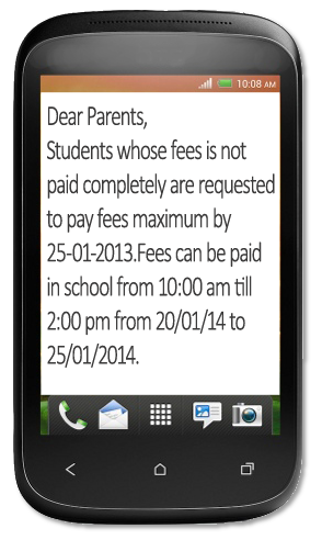 - Inform parents, students about exam schedules, vaccation schedules, fees dues etc